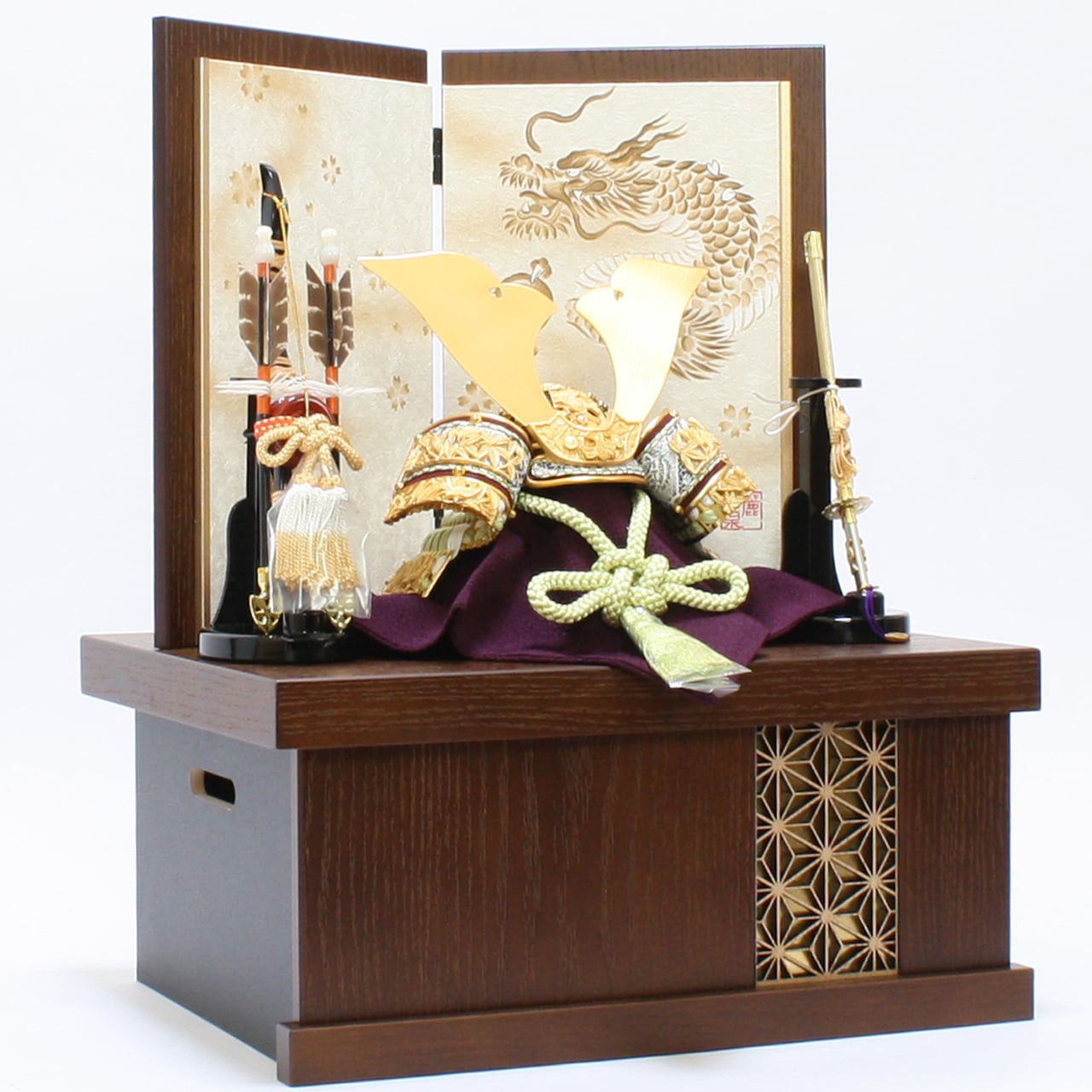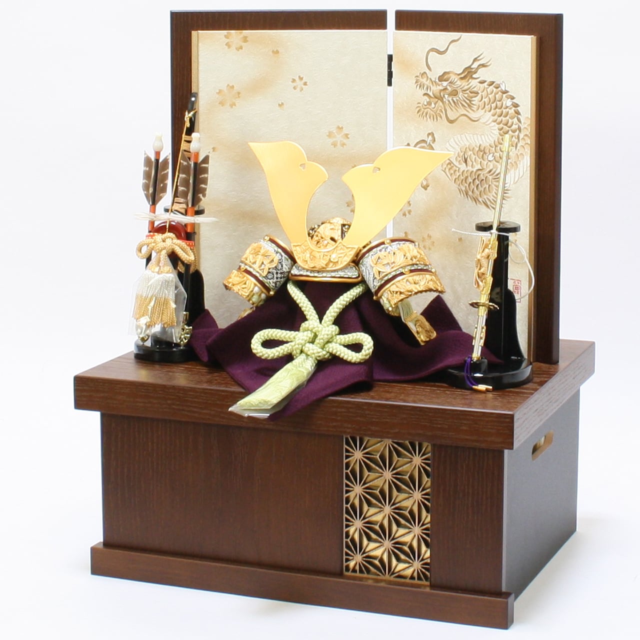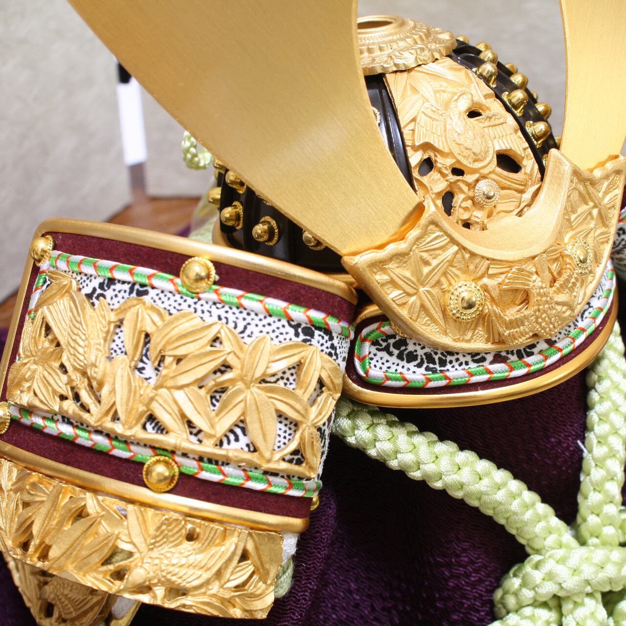 五月人形|コンパクト|おしゃれ|モダン|インテリア|プレミアム|こだわり|おすすめ|収納|《商品名》兜飾り 8号純金箔消 緑糸 竹雀 大鍬 上巻 収納タイプ【商品コード50808-8600 52213-2510 52408-0101】