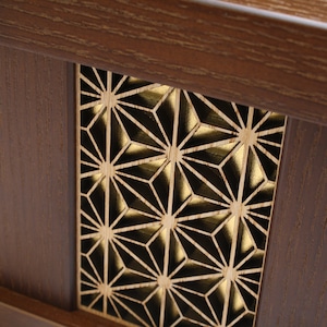 兜の鉢はプレスして型抜きしたものではなく、数十枚の金属板を加工し、手作業で鋲打ち留めをし、鉢を形成する矧ぎあわせ鉢にしました。鉢裏には本革を当て仕上げる加工をしております。威しに使用した小札(糸を通す板)は金箔を一枚一枚丁寧に押しながら貼る仕上げとなっております。また、鍬形をはじめとするすべての装飾金具には純金を溶かし塗仕上げる純金鍍金を施しました。その輝きは別格で高級感漂う逸品です。また、木製の飾り台の中にすべて収納できる省スペース型収納タイプとなっております。