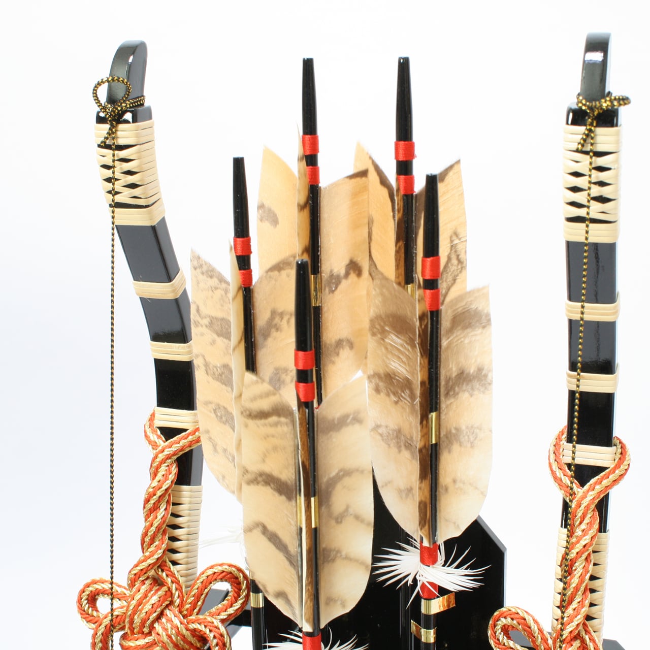 初正月では弓、矢を組み合わるのが一般的です。すべて天然の羽根を使用しています。