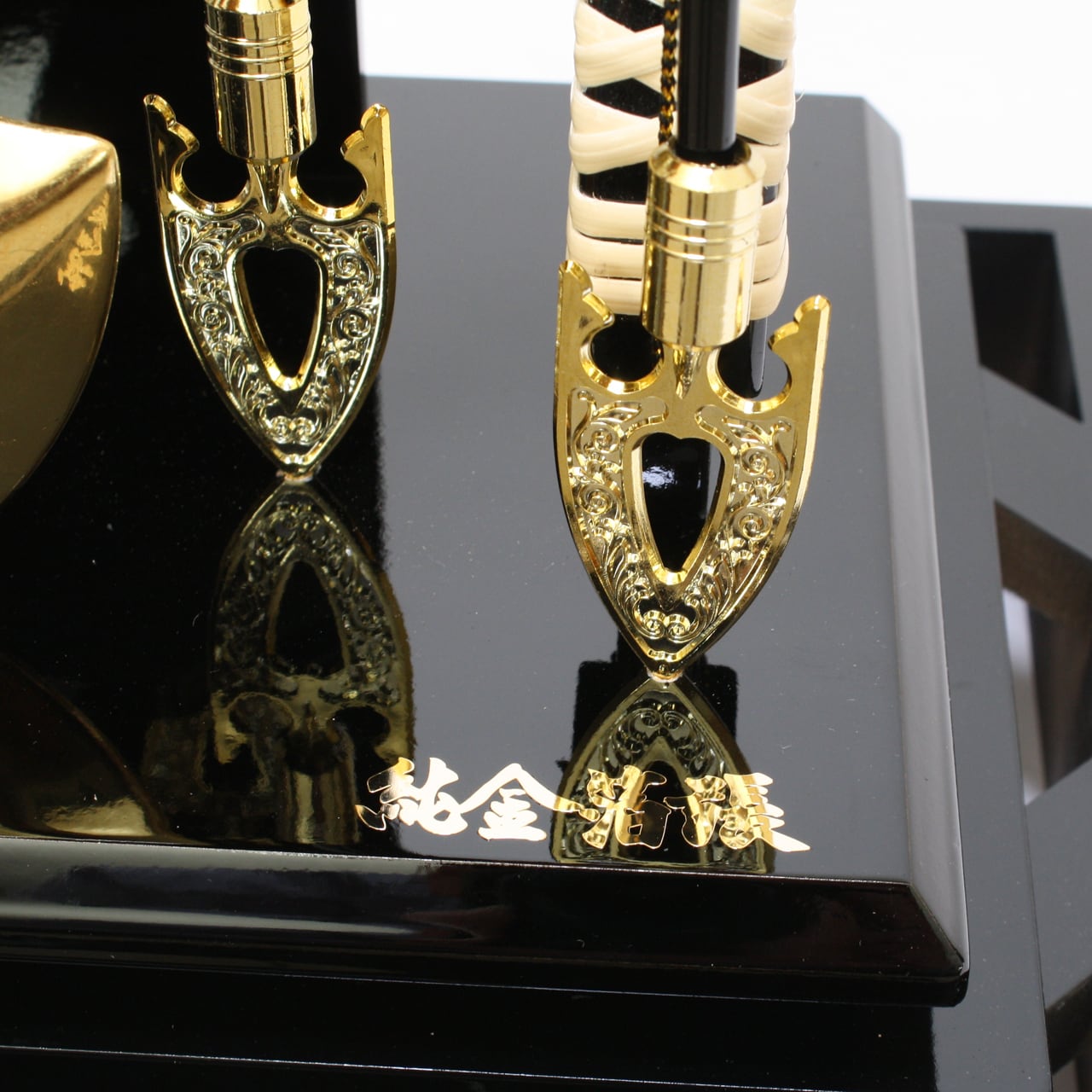 純金箔を一枚一枚丁寧に押した大きな飾り矢尻(やじり)を使った破魔弓飾りです。