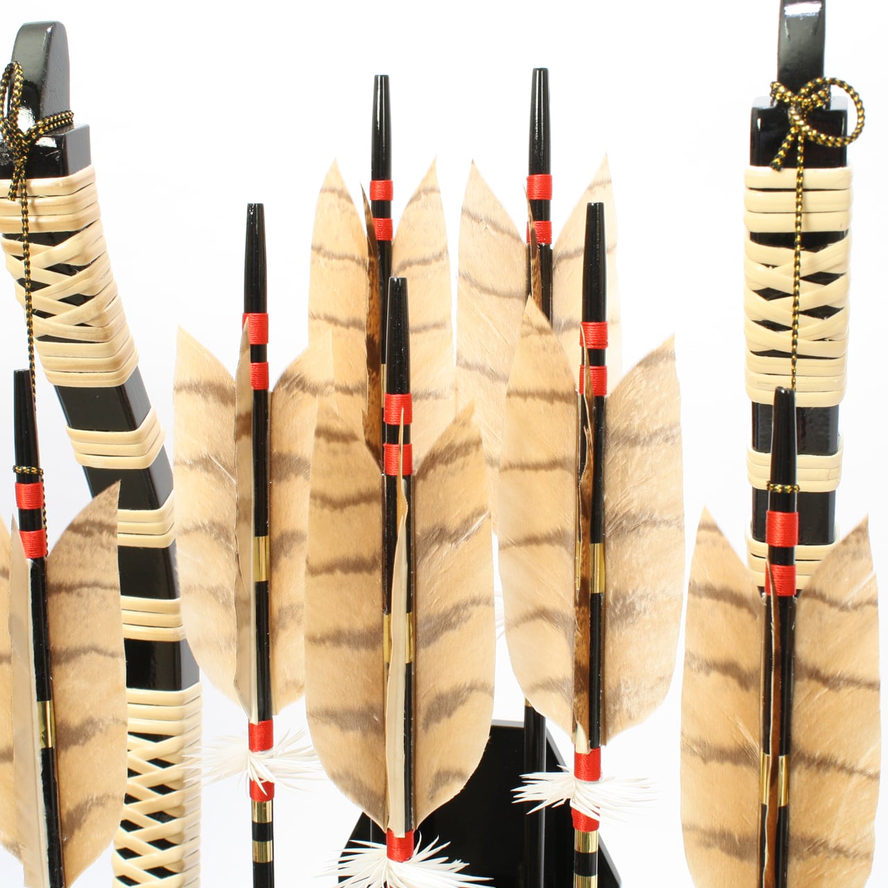 初正月では弓、矢を組み合わるのが一般的です。すべて天然の羽根を使用しています。