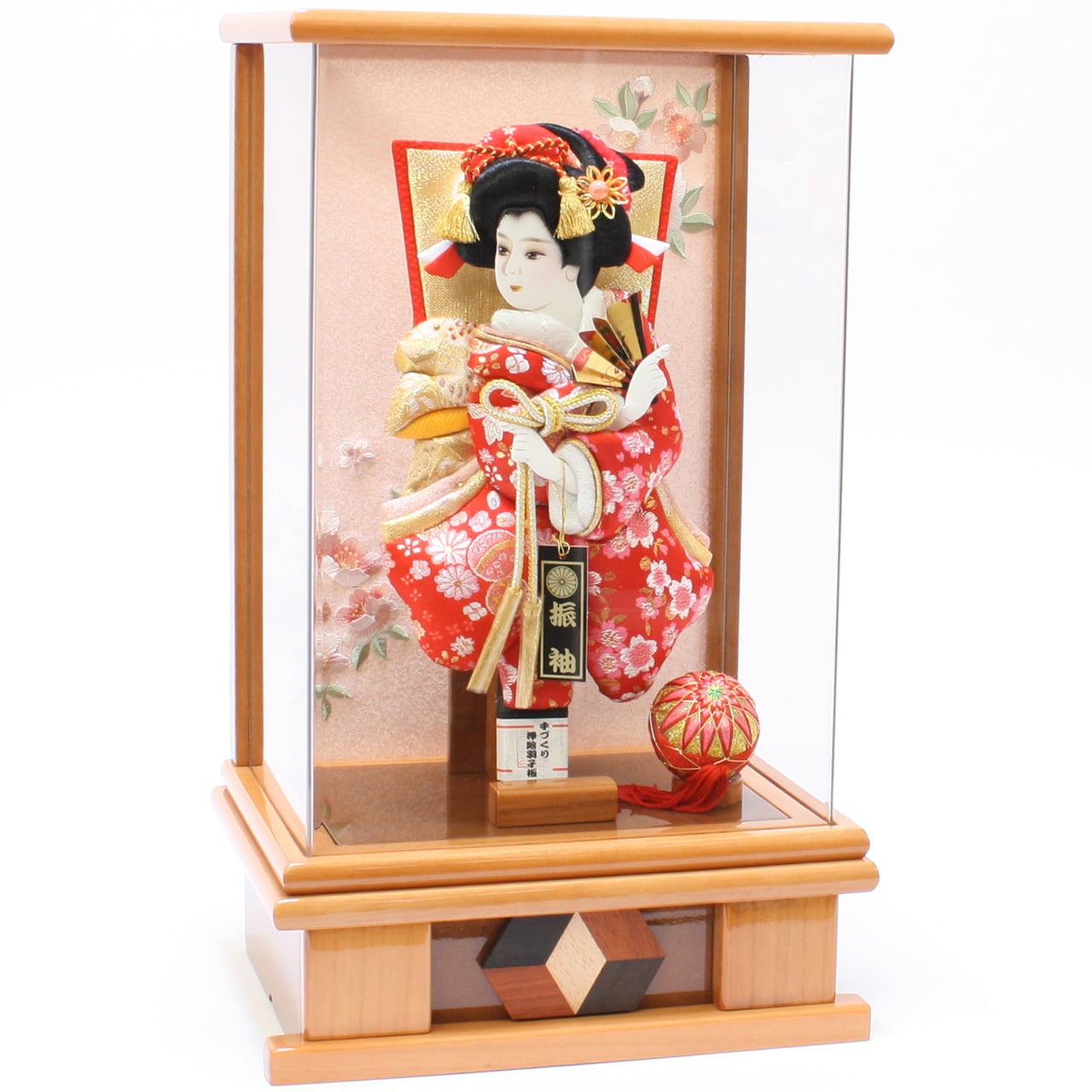 羽子板飾り《商品コード》10308-0161 A 花振袖 金襴 10408-1187 621187 羽子板ケース 杏|初正月|省スペース|おしゃれ|モダン|コンパクト|江戸押絵羽子板|無病息災|邪気払い|無患子