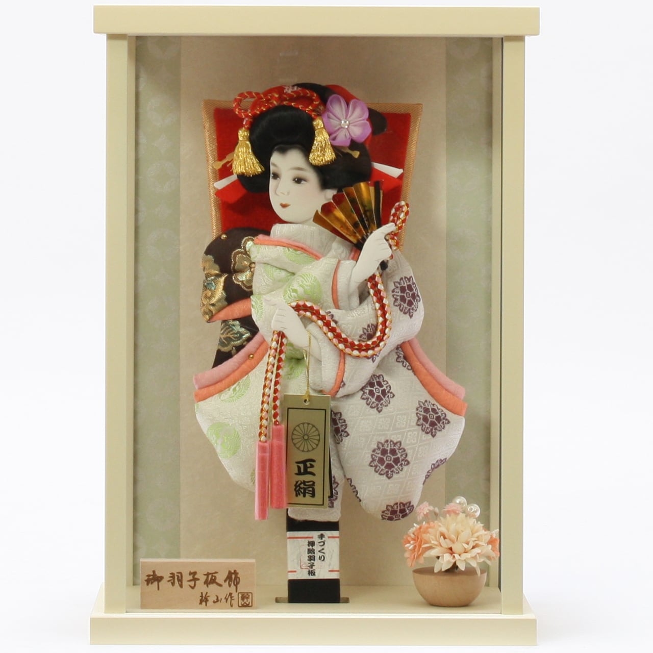 羽子板飾り《商品コード》10308-0160 花振袖 正絹 令和即位 10400-2510 W25-10 額飾り 雪|初正月|省スペース|おしゃれ|モダン|コンパクト|江戸押絵羽子板|無病息災|邪気払い|無患子