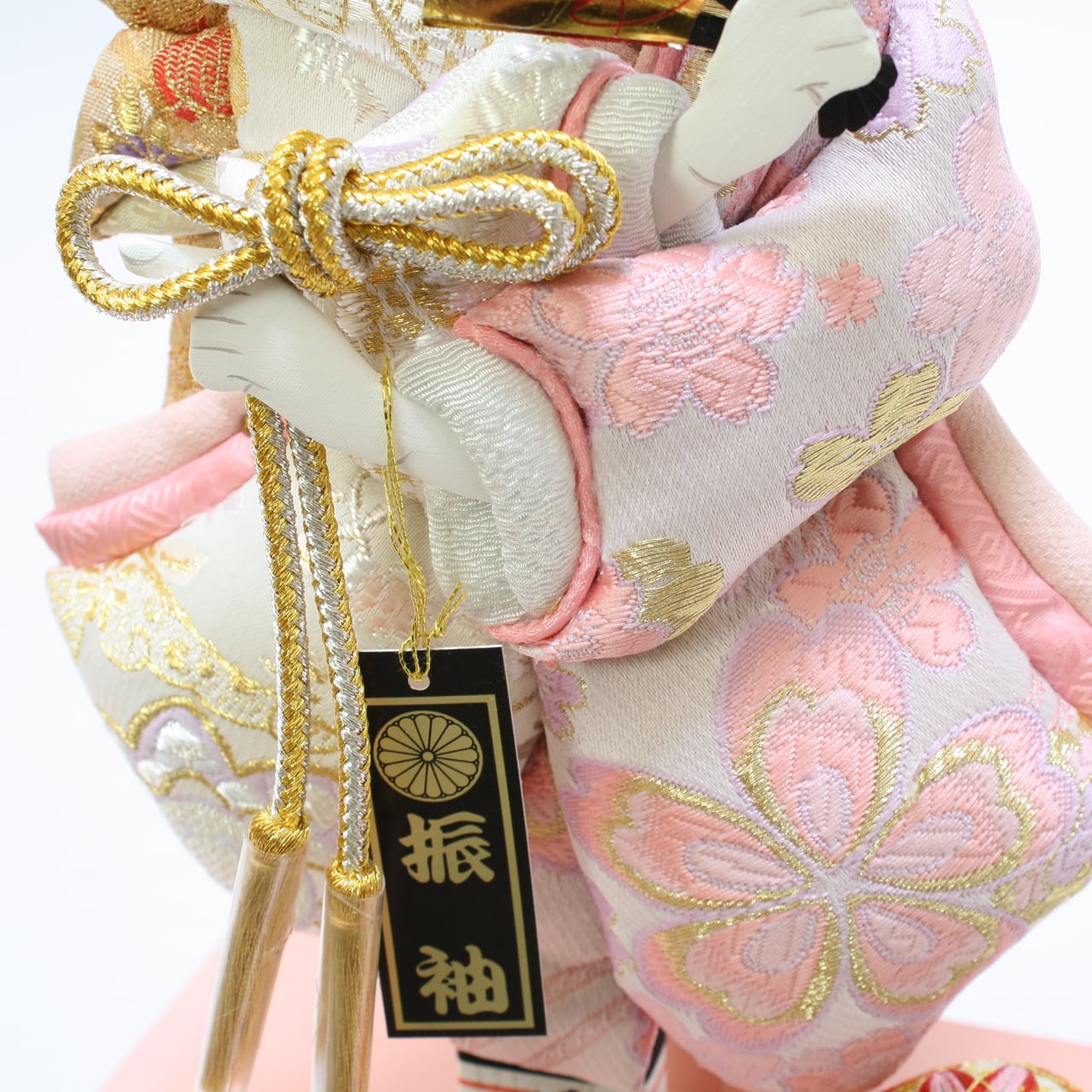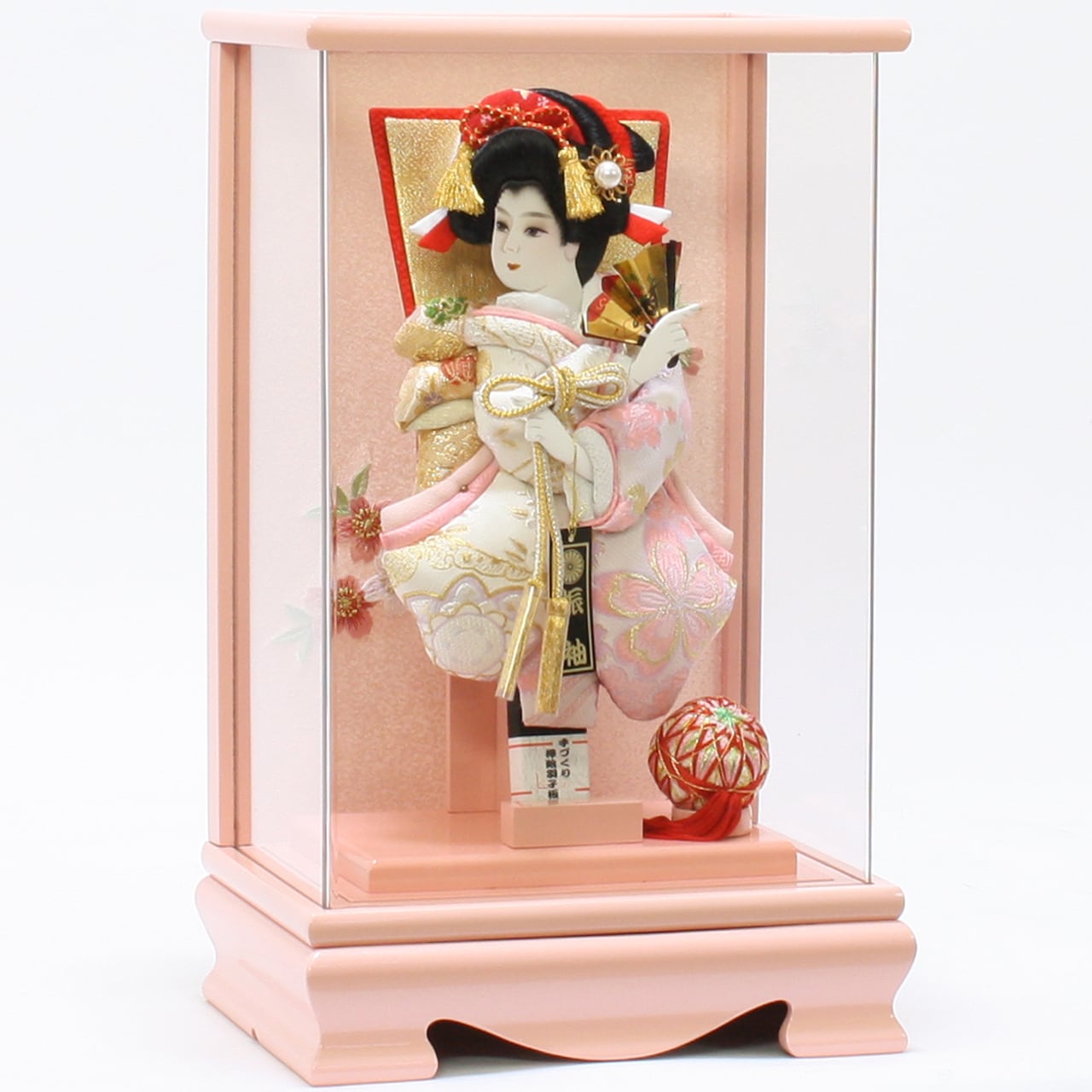 羽子板飾り《商品コード》10308-0164 D 花振袖 金襴 10408-0009 621190 羽子板ケース アクリルピンク|初正月|省スペース|おしゃれ|モダン|コンパクト|江戸押絵羽子板|無病息災|邪気払い|無患子