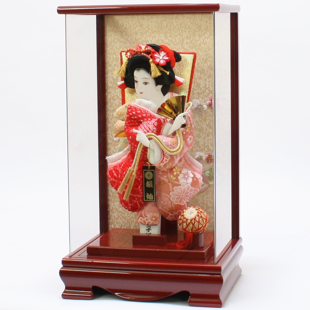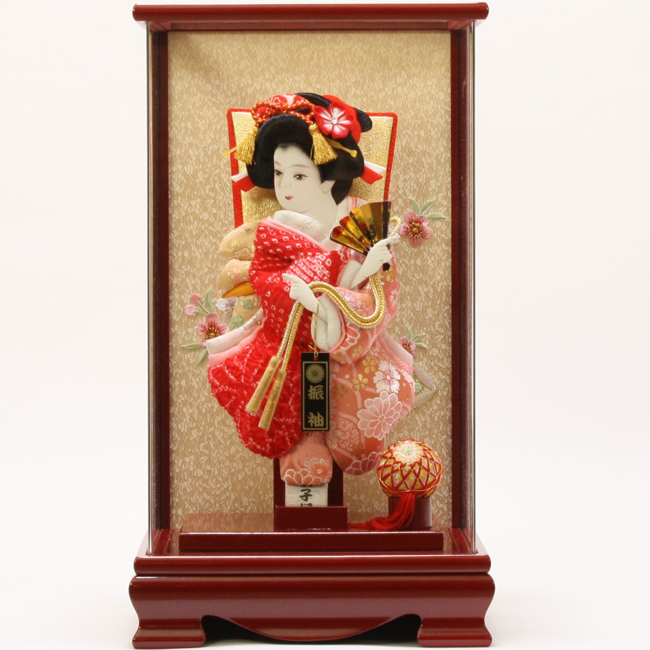 羽子板飾り《商品コード》10310-0127 A 振袖金襴 かのこ 赤 10410-0129 621192 羽子板ケース アクリル 赤|初正月|省スペース|おしゃれ|モダン|コンパクト|江戸押絵羽子板|無病息災|邪気払い|無患子