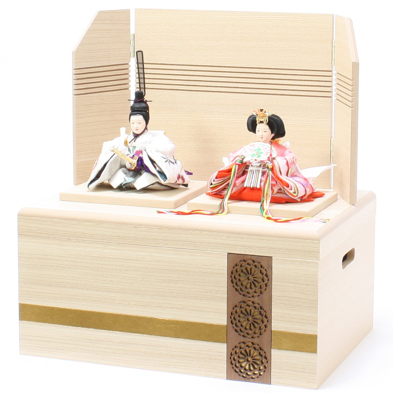 雛人形|ひな人形|初節句|コンパクト|おしゃれ|モダン|インテリア|プレミアム|こだわり|おすすめ|作家|収納《商品名》衣装着親王飾り 3S-4 収納パールブドウ〔商品コード〕32200-8002〔品番〕MAT8002 2.5寸親王 白ピンク 〔商品コード〕33311-0003 〔品番〕A-3 台屏風セット 栓収納 米松花