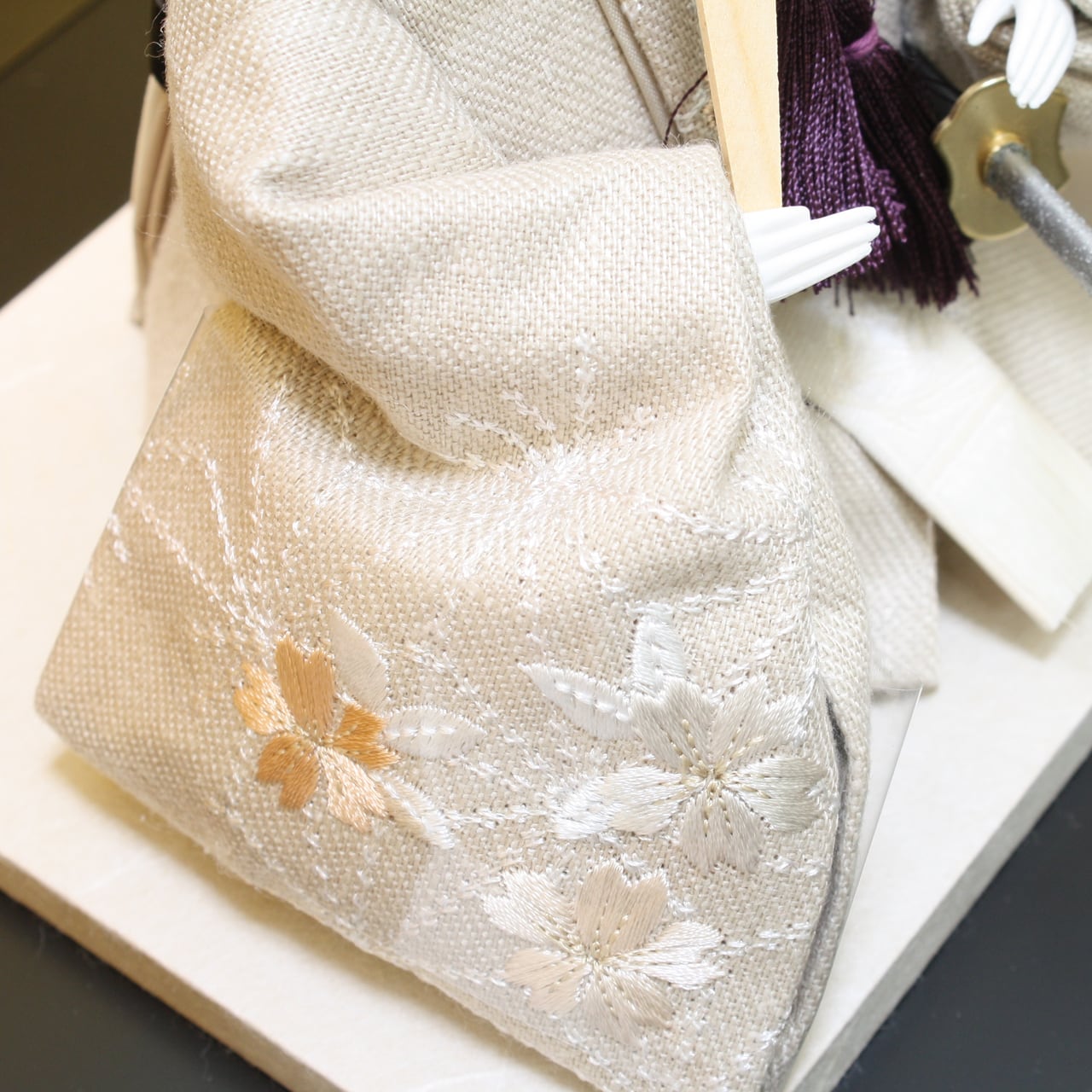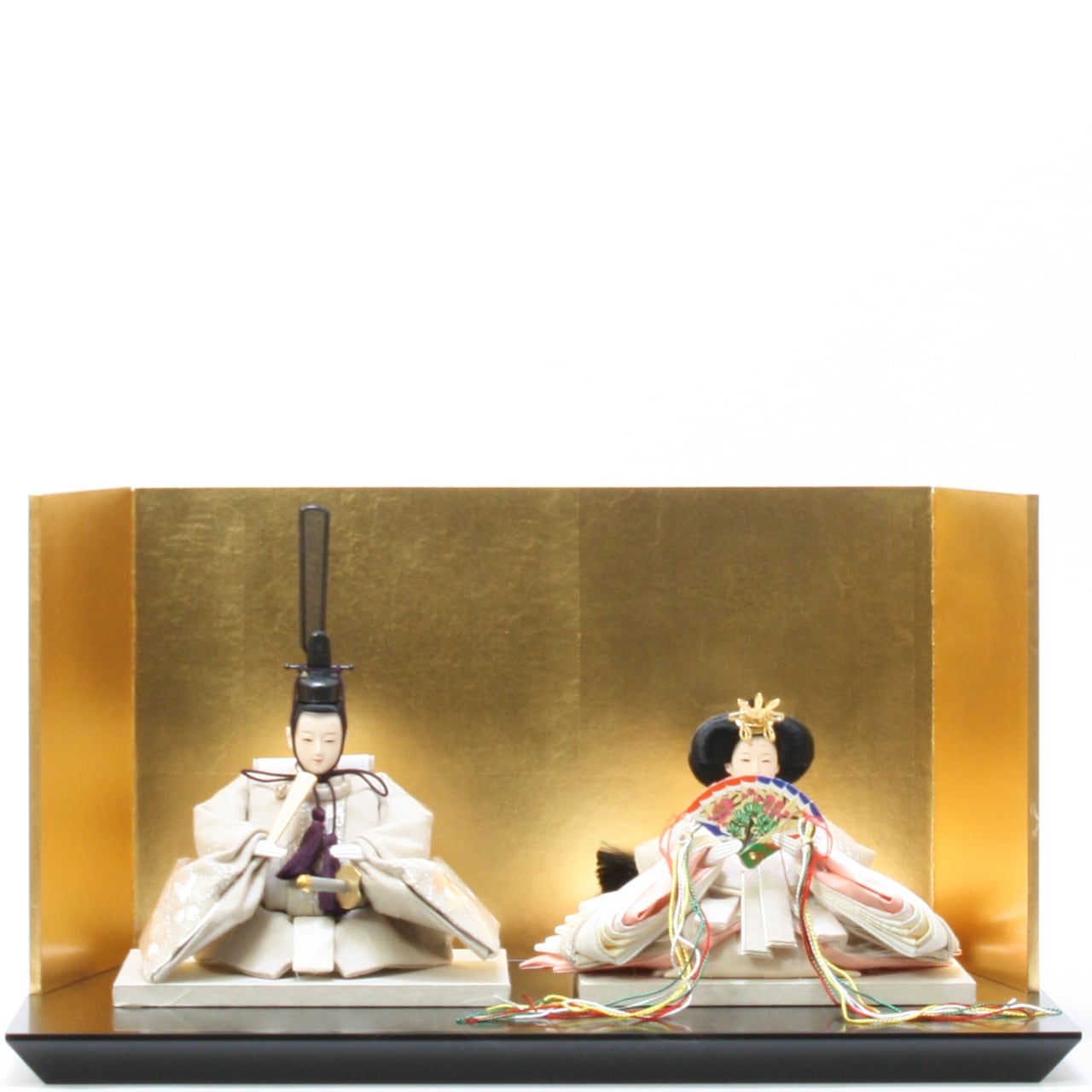 雛人形|ひな人形|初節句|コンパクト|おしゃれ|モダン|インテリア|プレミアム|こだわり|おすすめ|作家|〔商品コード〕32200-8011〔品番〕Y8035 芥子親王 ベージュ 桜 〔商品コード〕33315-0020 台屛風セット 黒塗 箔押三曲屏風