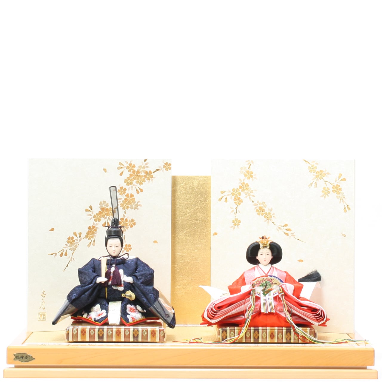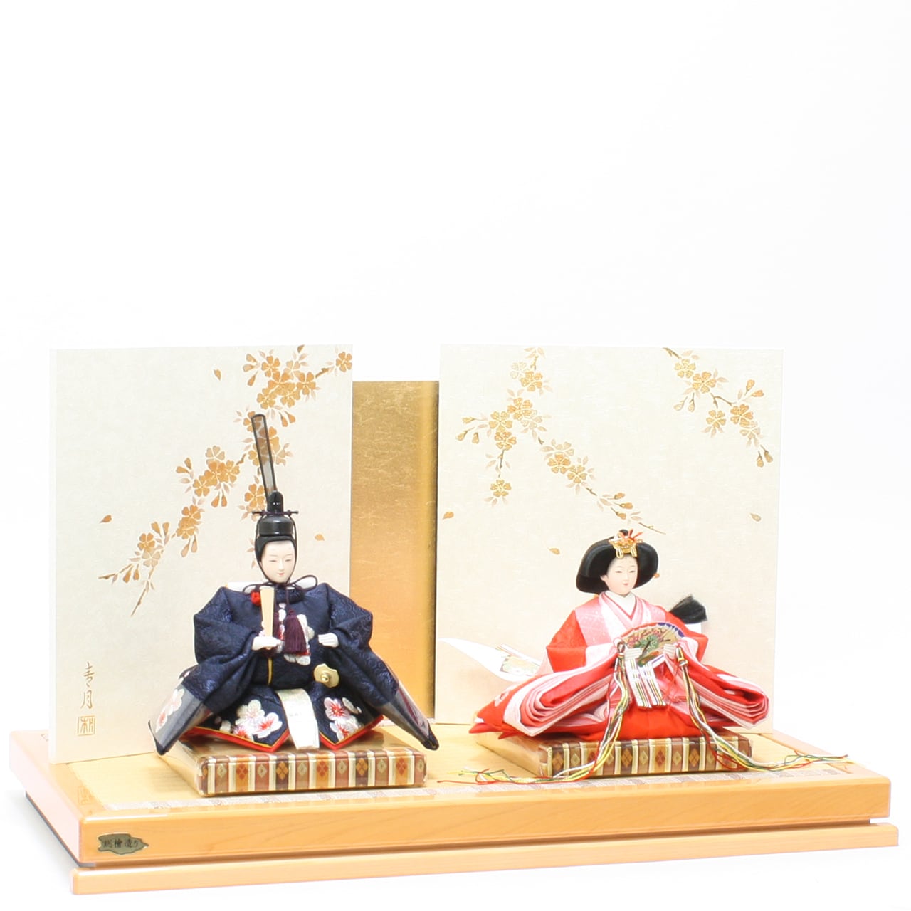 雛人形|ひな人形|初節句|コンパクト|おしゃれ|モダン|インテリア|プレミアム|こだわり|おすすめ|作家|〔商品コード〕32200-8017 〔品番〕Y7037A N京三五親王 紺×赤 桜 〔商品コード〕33320-1914 〔品番〕3-19-14 台屛風セット 和桜60㎝ 桧平台