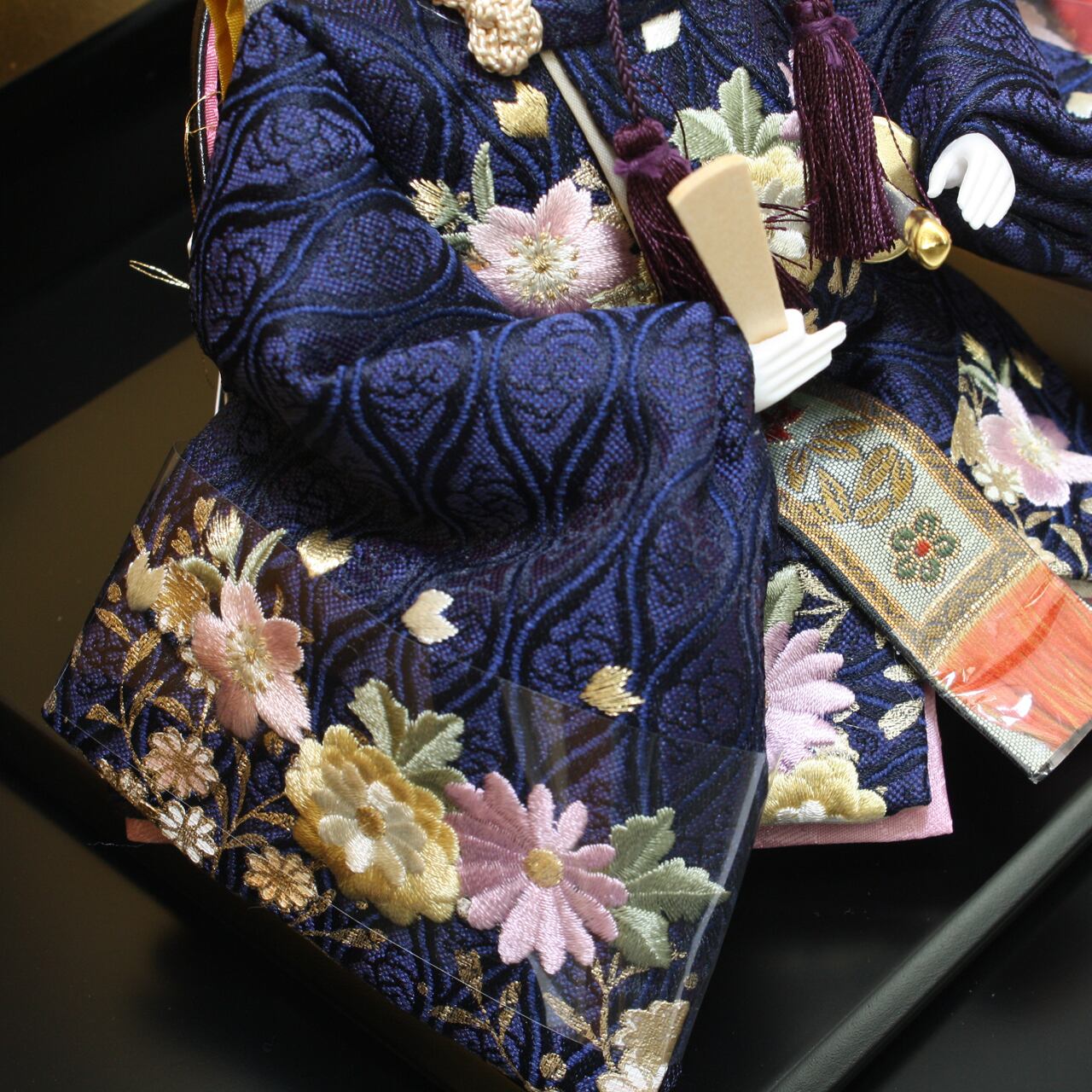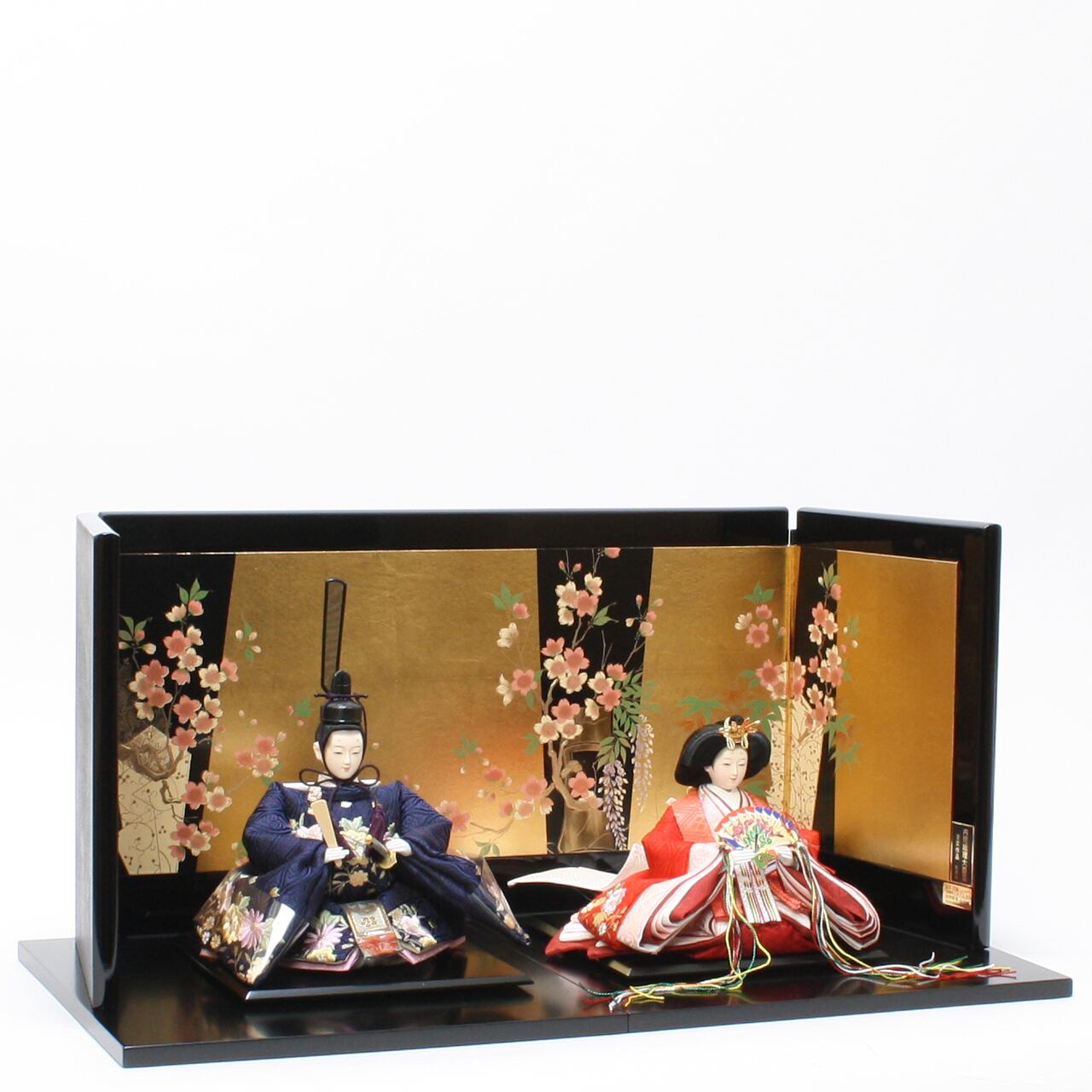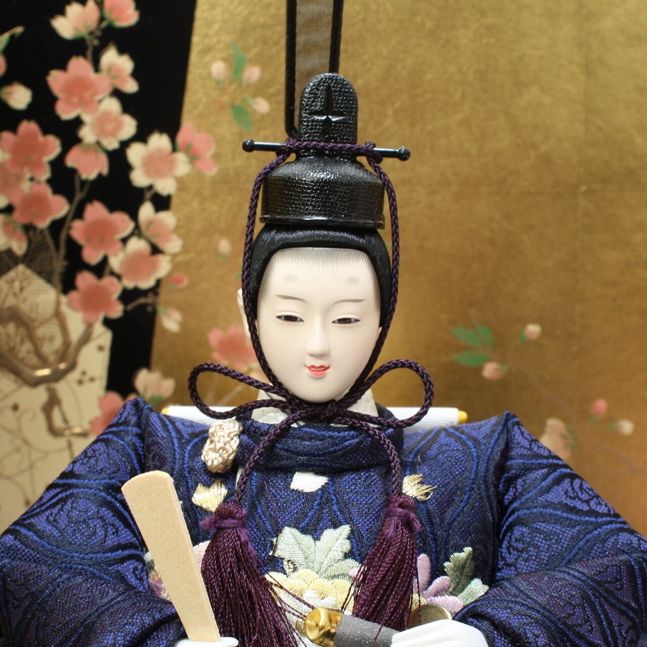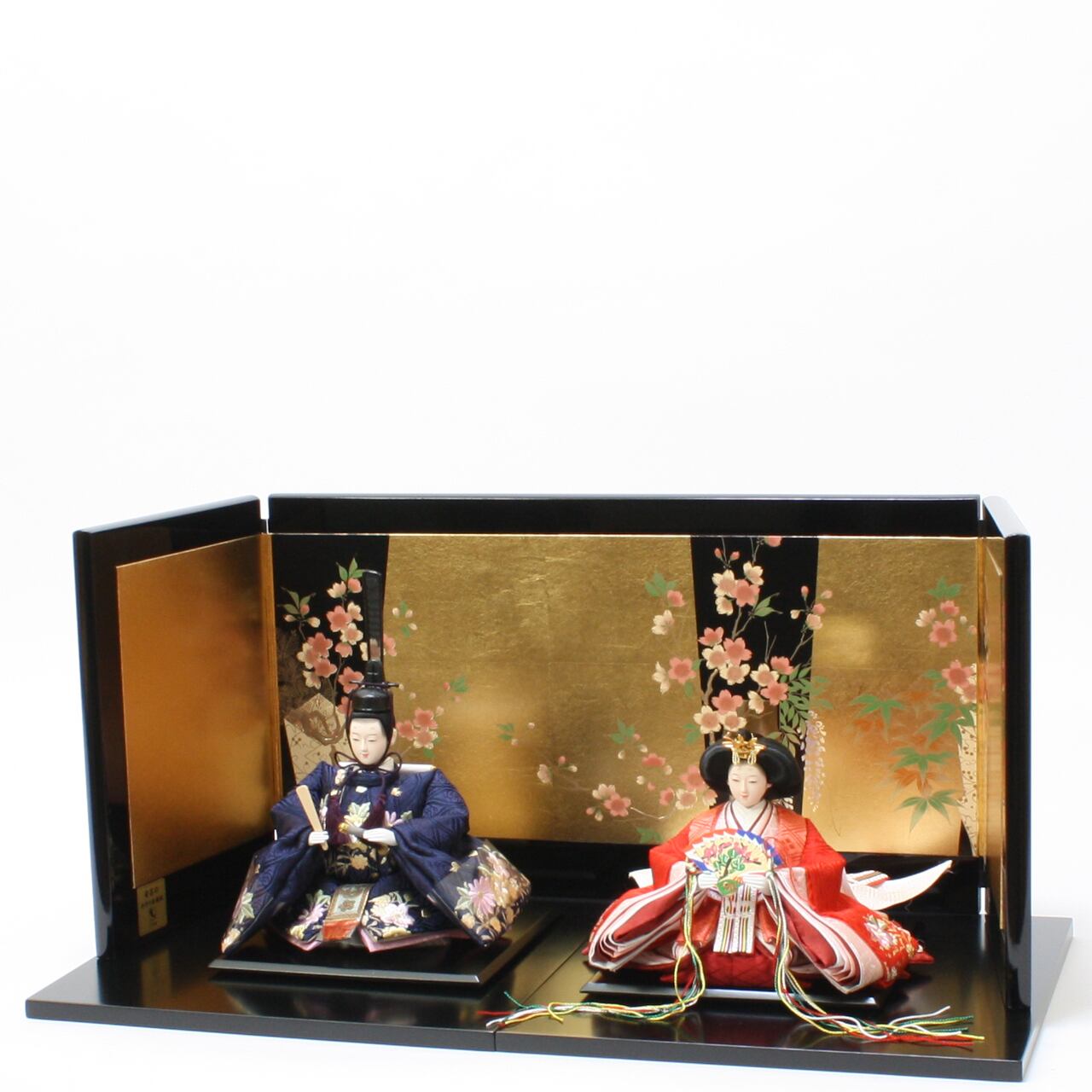 雛人形|ひな人形|初節句|コンパクト|おしゃれ|モダン|インテリア|プレミアム|こだわり|おすすめ|作家|〔商品コード〕32200-8018 〔品番〕Y8028 小三五親王 紺×赤 刺しゅう 〔商品コード〕33320-0119 台屛風セット 黒塗 60×60 〔商品コード〕32609-9950 〔品番〕399950 屏風 宝永つぼ桜9号