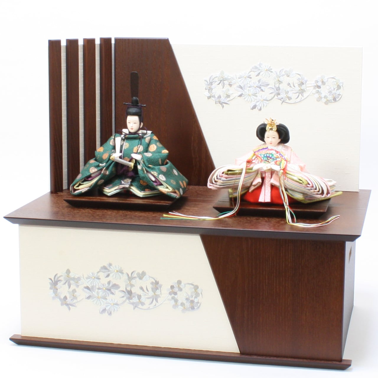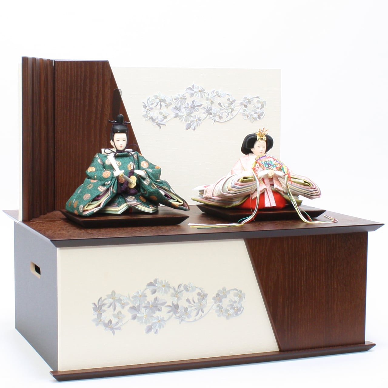 雛人形|ひな人形|初節句|コンパクト|おしゃれ|モダン|インテリア|プレミアム|こだわり|おすすめ|作家|収納〔商品コード〕32213-0105 〔品番)21305-6LC 京十三番親王 〔商品コード〕33317-2604 〔品番)3-26-4 台屛風セット 花丸50㎝ オーク収納