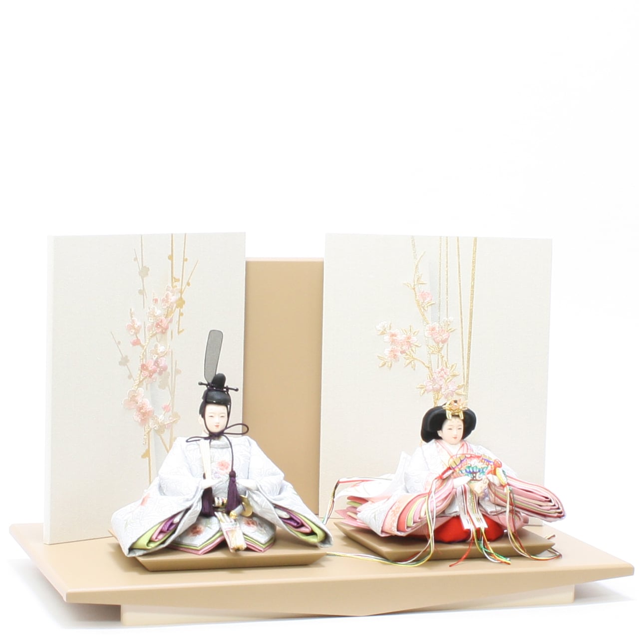雛人形|ひな人形|初節句|コンパクト|おしゃれ|モダン|インテリア|プレミアム|こだわり|おすすめ|作家|〔商品コード〕32213-0108 〔品番〕21308-7YW 京十三番親王 〔商品コード〕33317-2622 〔品番〕3-26-22 台屛風セット 梅桜 50㎝ ラテ平台