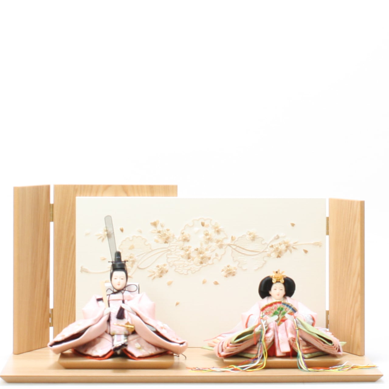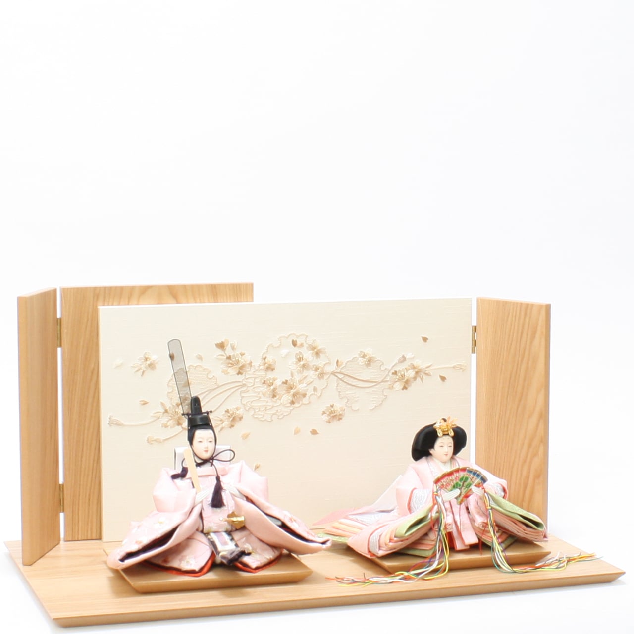 雛人形|ひな人形|初節句|コンパクト|おしゃれ|モダン|インテリア|プレミアム|こだわり|おすすめ|作家|〔商品コード〕32245-0214〔品番〕M25-B214 芥子親王 特茜 〔商品コード〕33318-2519〔品番〕3-25-19 台屛風セット 雪輪桜55㎝ タモ平台