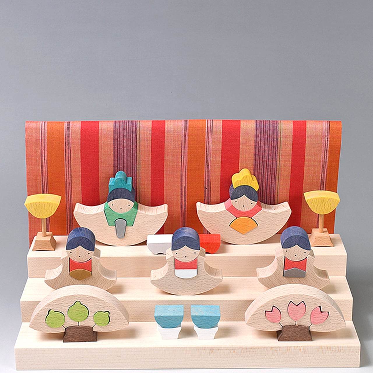 雛人形|ひな人形|初節句|コンパクト|おしゃれ|モダン|インテリア|プレミアム|こだわり|おすすめ|組み木デザイナー|小黒三郎|組み木|木製ひな人形 KH410 銀杏円びな三段飾り(普通垂幕/赤)