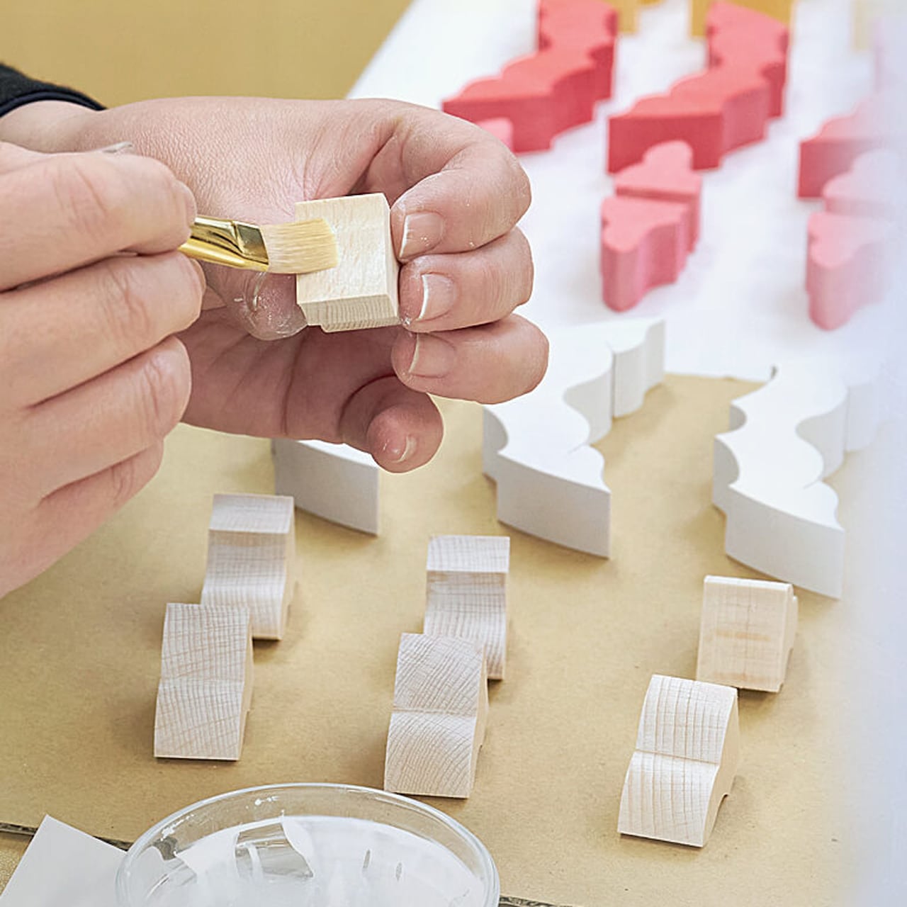 「組み木の節句人形」に使用している容器や装飾品は、すべてが国内生産の伝統工芸品で、日本各地から厳選した工房にオーダーメイドで発注しています。協力いただいている工房は、それぞれの分野でのスペシャリストです。