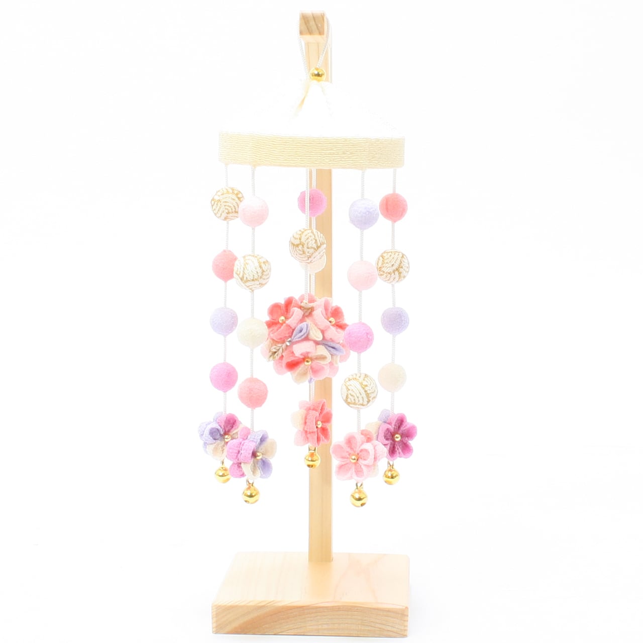 雛人形|ひな人形|初節句|コンパクト|おしゃれ|モダン|インテリア|プレミアム|こだわり|おすすめ|《商品名》34000-0209 DT009S 吊るし飾り 小花(丸)紫×薄ピンク 白木台