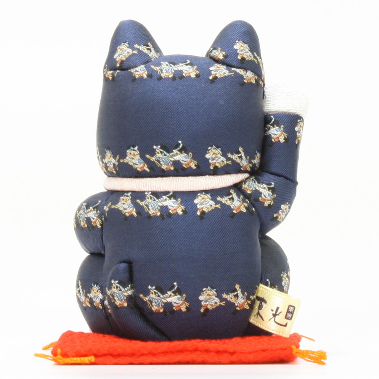 縁起物 木目込み招き猫 博多織 ちびっこ山笠 青(小)座布団付 柿沼東光作 日本製 品番2203-03-FM30