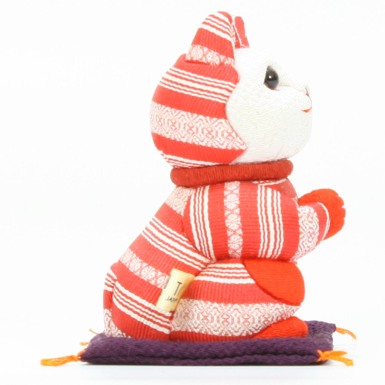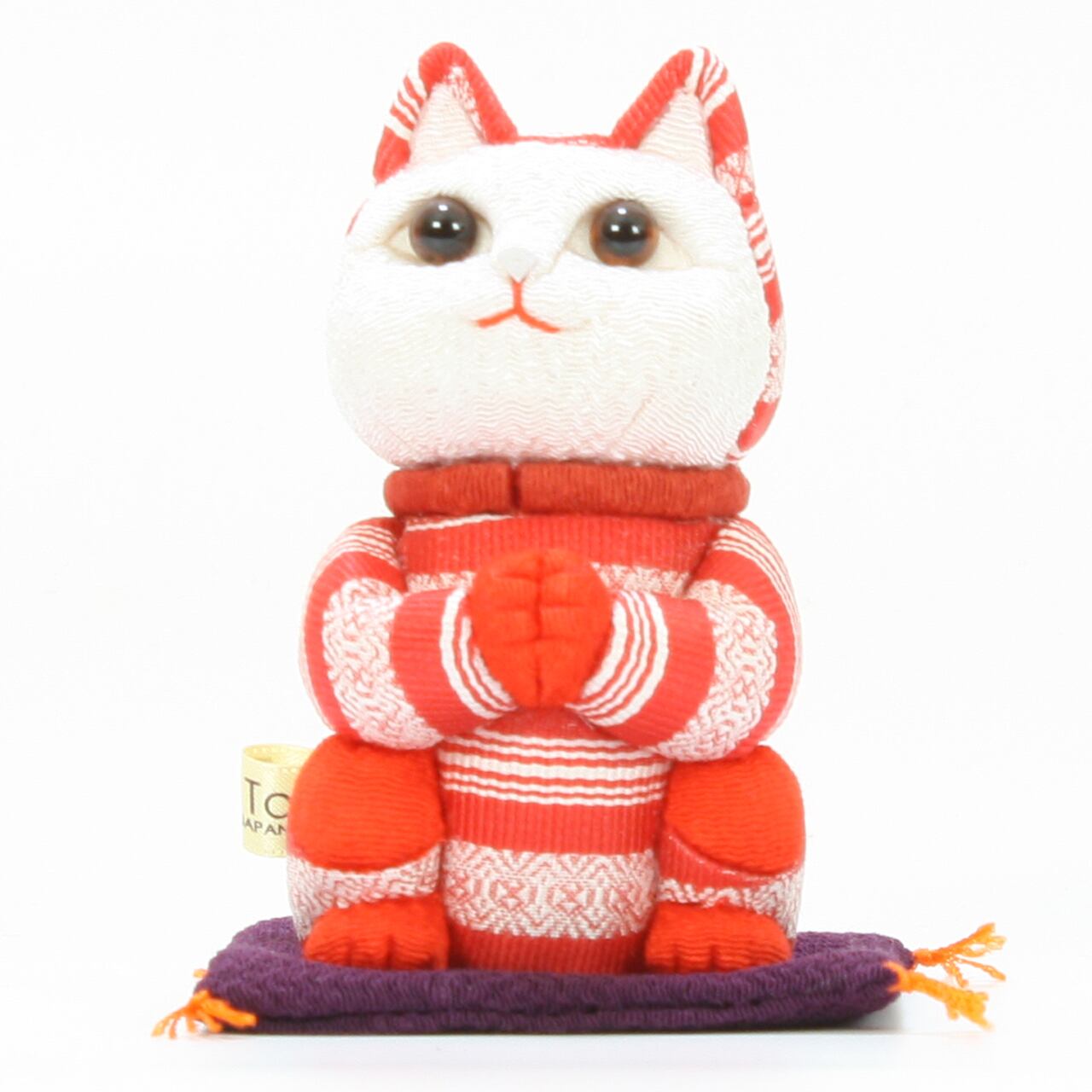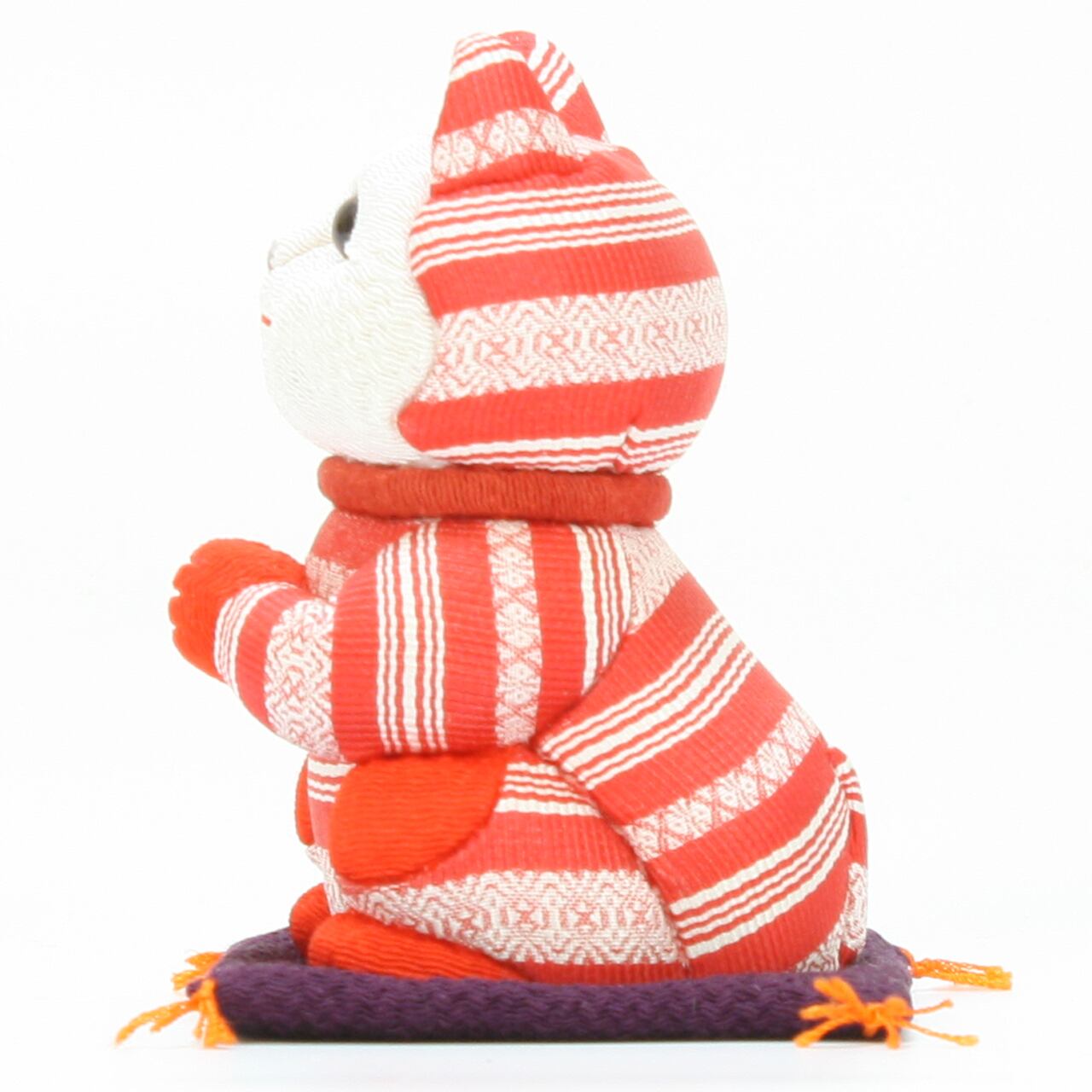 縁起物 木目込み招き猫 星に願いを 博多織 赤(小)座布団付 柿沼東光作 日本製 品番 2237-FM30