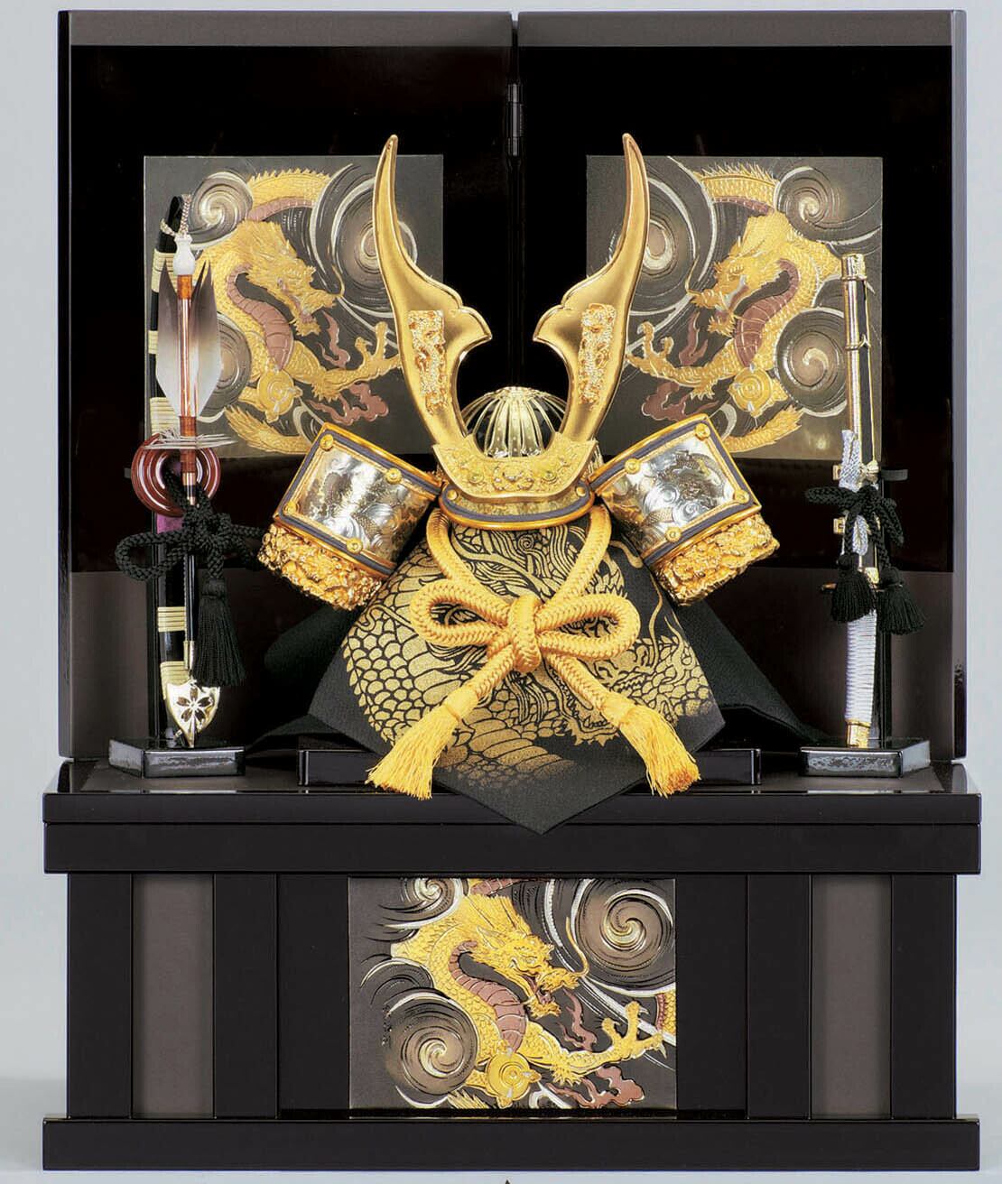 五月人形|コンパクト|おしゃれ|モダン|インテリア|プレミアム|こだわり|おすすめ《商品名》兜飾り(収納タイプ)8号 金龍【品番A-007】