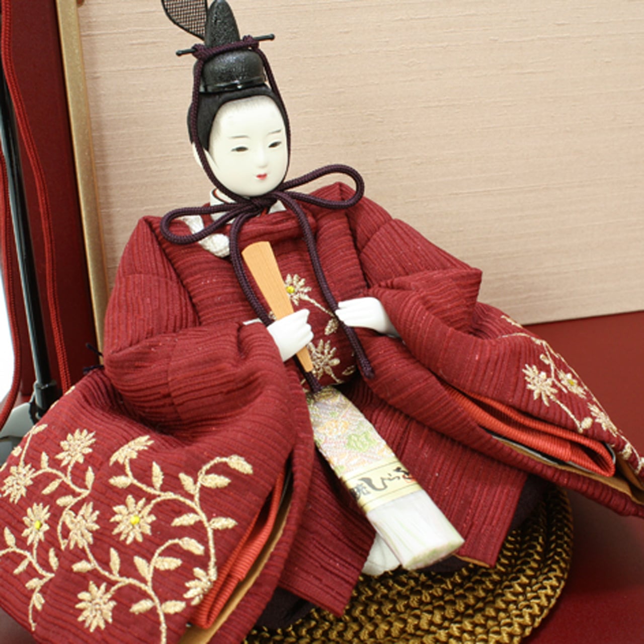 【付属品】 ひな人形の飾り方冊子・お手入れセット(白手袋・天然毛バタキ・クロス)・オルゴール付フォトスタンド・防虫剤(日本人形協会推奨 ムシューダ人形用)・長期20年保証書(保証範囲は保証規約に基づきます)