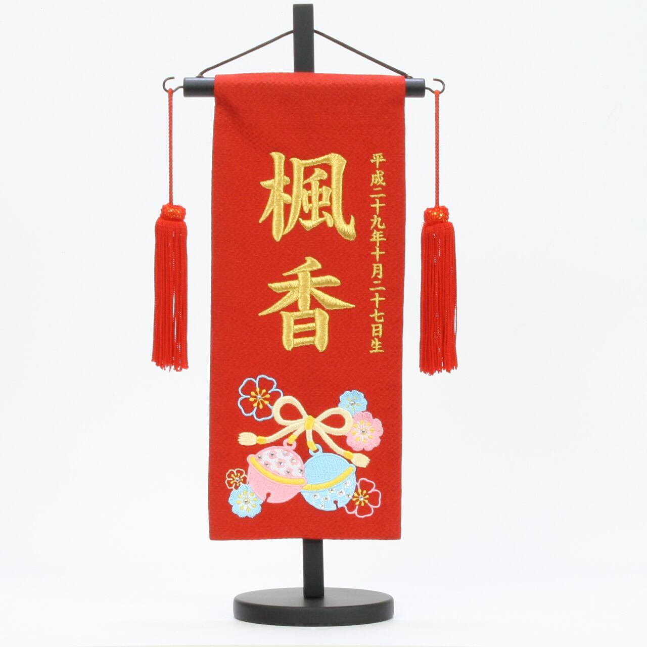 雛人形|ひな人形|初節句|コンパクト|おしゃれ|モダン|インテリア|プレミアム|こだわり|おすすめ|《商品名》名前旗飾り ちりめん 赤 鈴結び 小 刺繍名前・生年月日入 【商品コード 34000-0041】