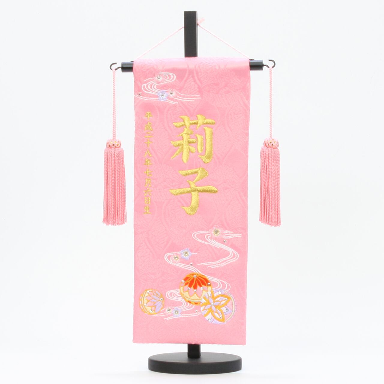 雛人形|ひな人形|初節句|コンパクト|おしゃれ|モダン|インテリア|プレミアム|こだわり|おすすめ|《商品名》名前旗飾り ジャガード ピンク 流水にまり 小 刺繍名前・生年月日入 【商品コード 34000-0045】