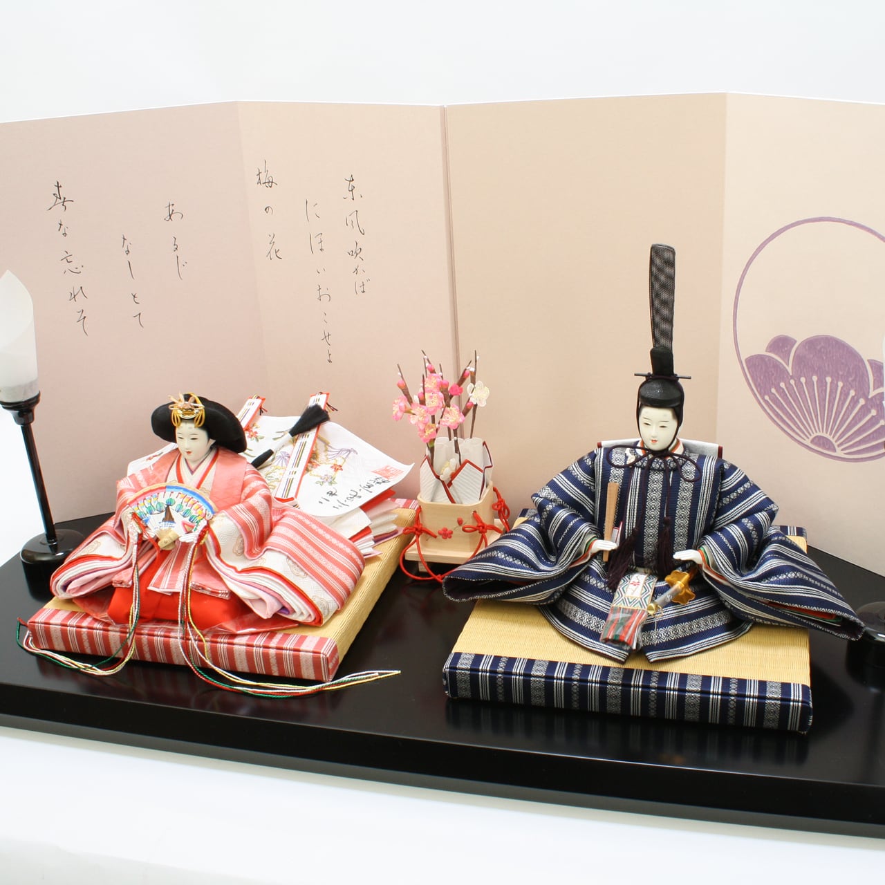 雛人形|ひな人形|初節句|コンパクト|おしゃれ|モダン|インテリア|プレミアム|こだわり|おすすめ|《商品名》衣装着親王飾り 博多織 夢筑紫 紺桃〔商品コード〕32209-0115