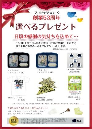 【付属品】 五月人形の飾り方冊子・お手入れセット(白手袋・天然毛バタキ・クロス)・防虫剤(日本人形協会推奨 ムシューダ人形用)・長期20年保証書(保証範囲は保証規約に基づきます)