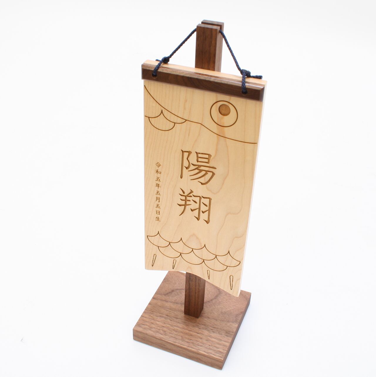 五月人形|コンパクト|おしゃれ|モダン|インテリア|プレミアム|こだわり|おすすめ|名前旗|《商品名》男児用 木製名前旗飾り ブラックウォルナット 鯉 S〔商品コード52800-0175〕