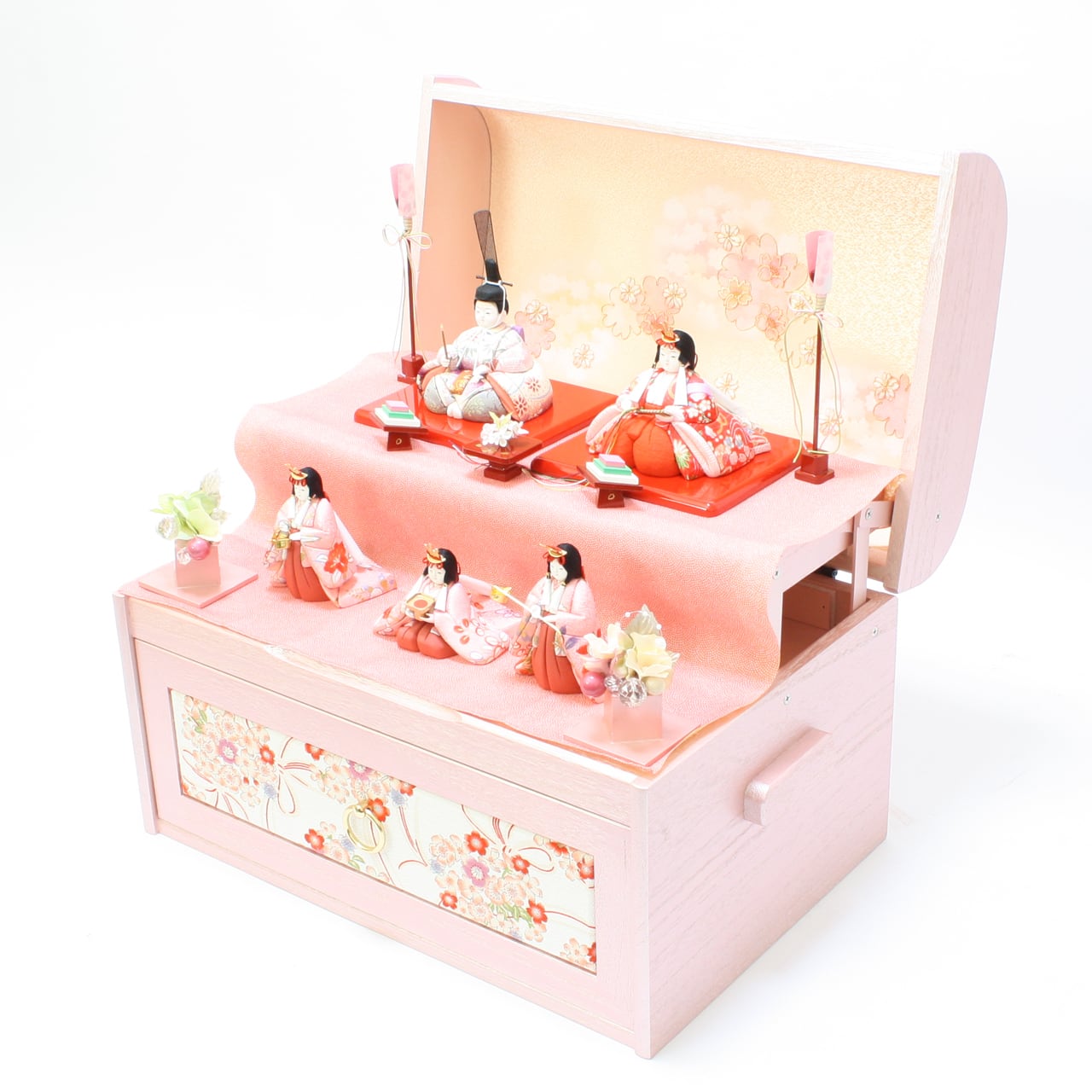 雛人形|ひな人形|初節句|コンパクト|おしゃれ|モダン|インテリア|プレミアム|こだわり|おすすめ|《商品名》木目込五人飾り 桜華 宝石箱パールピンク〔商品コード〕30900-5205