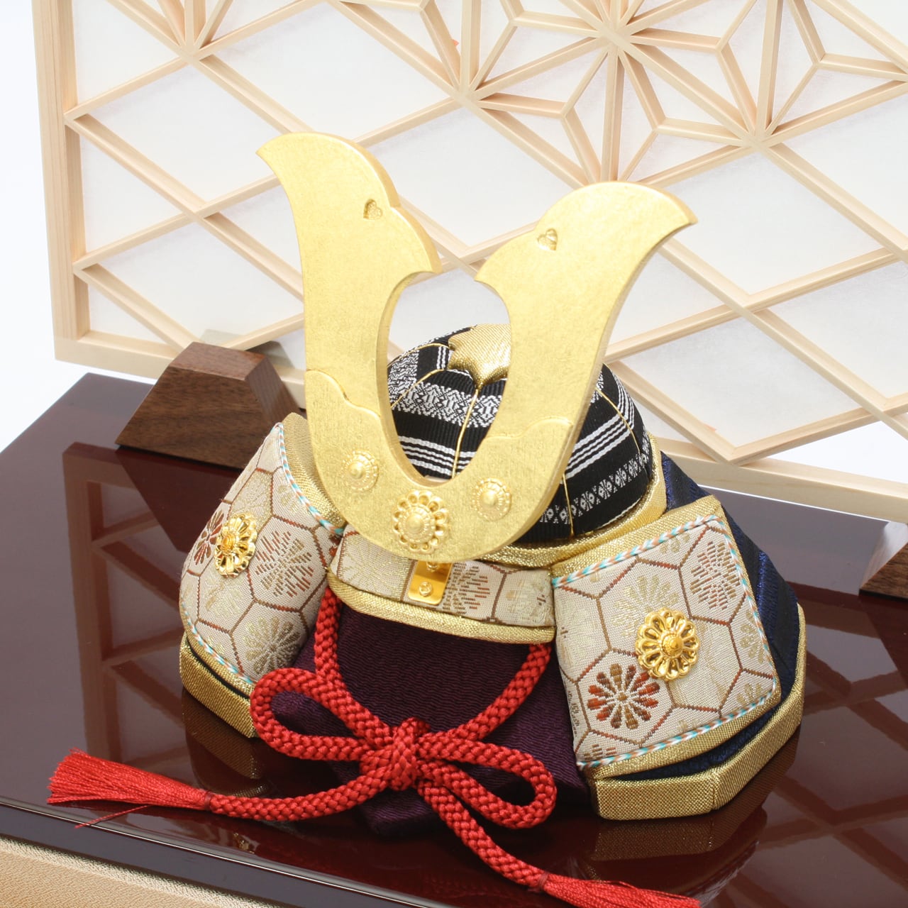 伝統工芸士柿沼東光とプロダクトデザイナー大沼敦とのコラボレーションにより実現いたしました。木目込み兜飾りには、日本の美しい伝統工芸が散りばめられています。正絹博多織、江戸木目込、金沢箔、鹿沼組子、寄木細工、紀州塗など、伝統の粋を感じられる仕上がりとなっております。衣装は「博多織」。博多織の中でも最も由緒ある「献上柄」を採用しました。モダンでありながら本物を追求した逸品となっております。