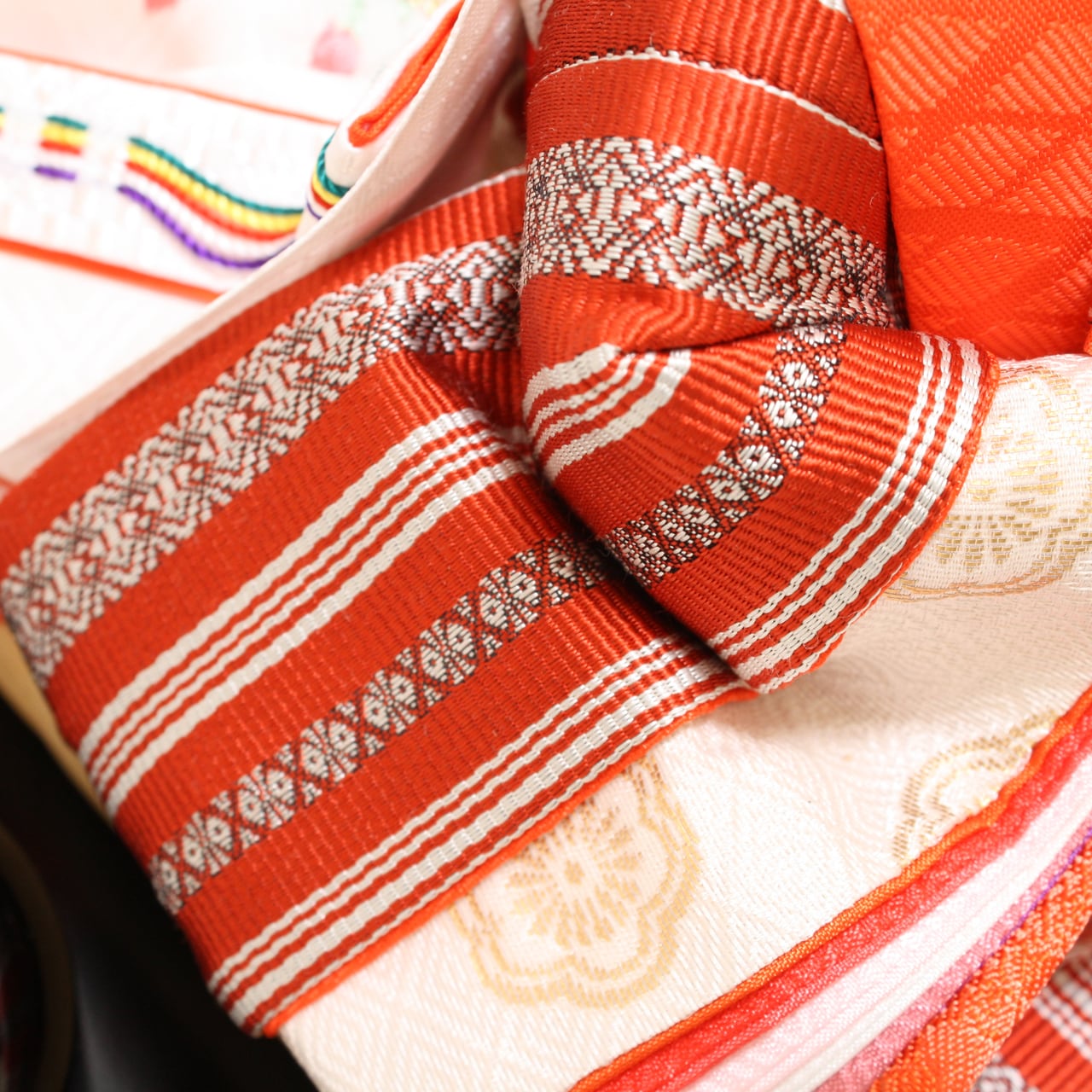 使用している博多織は博多織工業組合所属、株式会社サヌイ織物の絹100%の生地を使用しております。和装小物はもちろんのこと、いまやその枠を飛び出し、インテリアのファブリック、手芸材料、ファッションの分野、映画の世界にまで、和洋といった単純なジャンルではなく、多彩な分野で活躍しております。