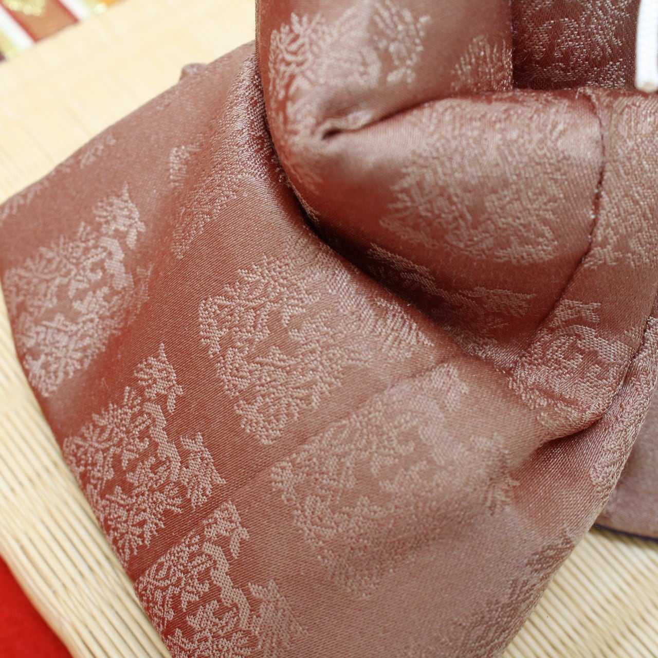 男雛の衣装の文様は桐竹鳳凰麒麟文様です。天皇の御袍の文様は桐竹鳳凰ですが、後世この上に麒麟(きりん)という空想上の動物の文様が加わります。深い緑色は伝統的な「山鳩色(やまばといろ)」麹塵とは、黄色みのある緑色の色の名です。青白橡と同じ色と言われ、単に「青色」と言われることもありました。また、ヤマバトの色に似ていることから、山鳩色とも言われます。山鳩色(やまばといろ)とは、山鳩の羽のような灰みの強い鈍い黄緑色のことです。山鳩とは青鳩のことで、色名はその羽の色に由来しています。