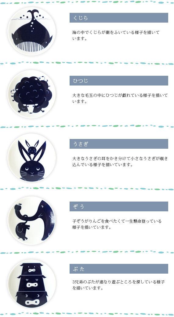 KOMON ( コモン ) KIDS ( キッズ ) 豆皿 くじら・ひつじ・うさぎ・ぞう・ぶた 全5柄セット
