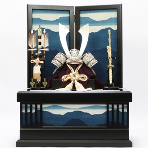 五月人形|コンパクト|おしゃれ|モダン|インテリア|プレミアム|こだわり|おすすめ|作家|一徳作|江戸甲冑《商品名》兜飾り プラチナ箔押10号 藍染連山 収納タイプ【商品コード50810-0105】
