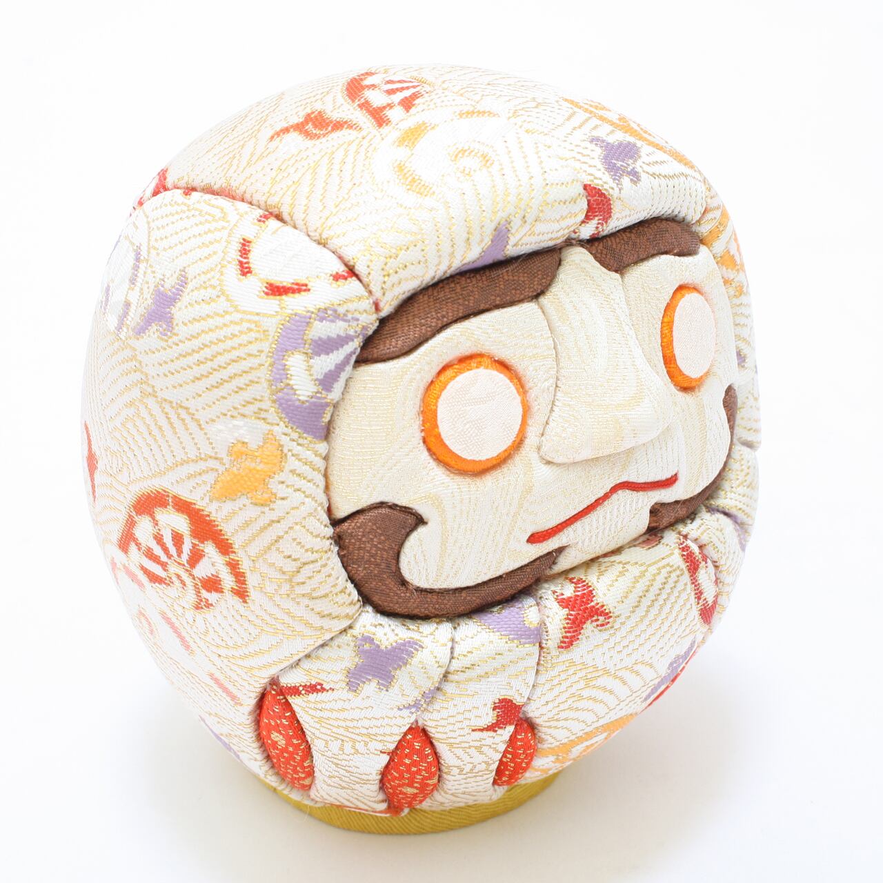 縁起物 木目込みダルマ 西陣織 D 白(大)座布団付 柿沼東光作 日本製 品番 2253-04
