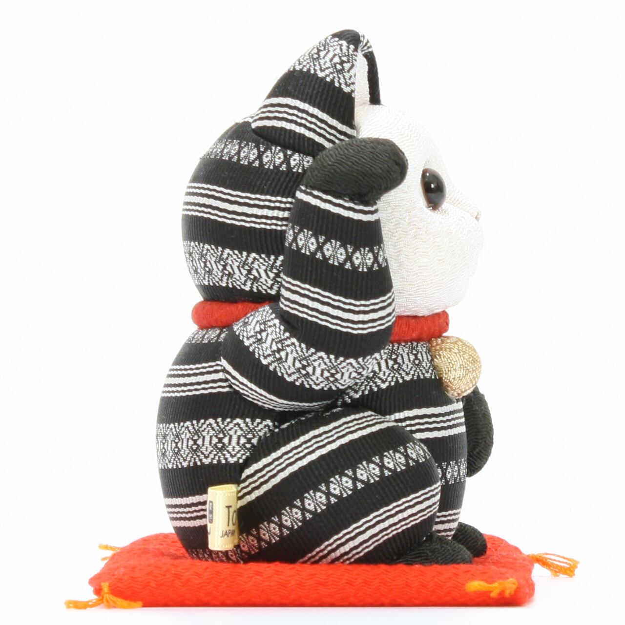 縁起物 木目込み招き猫 博多織 黒(中)座布団付 柿沼東光作 日本製 品番2202-01-FM30