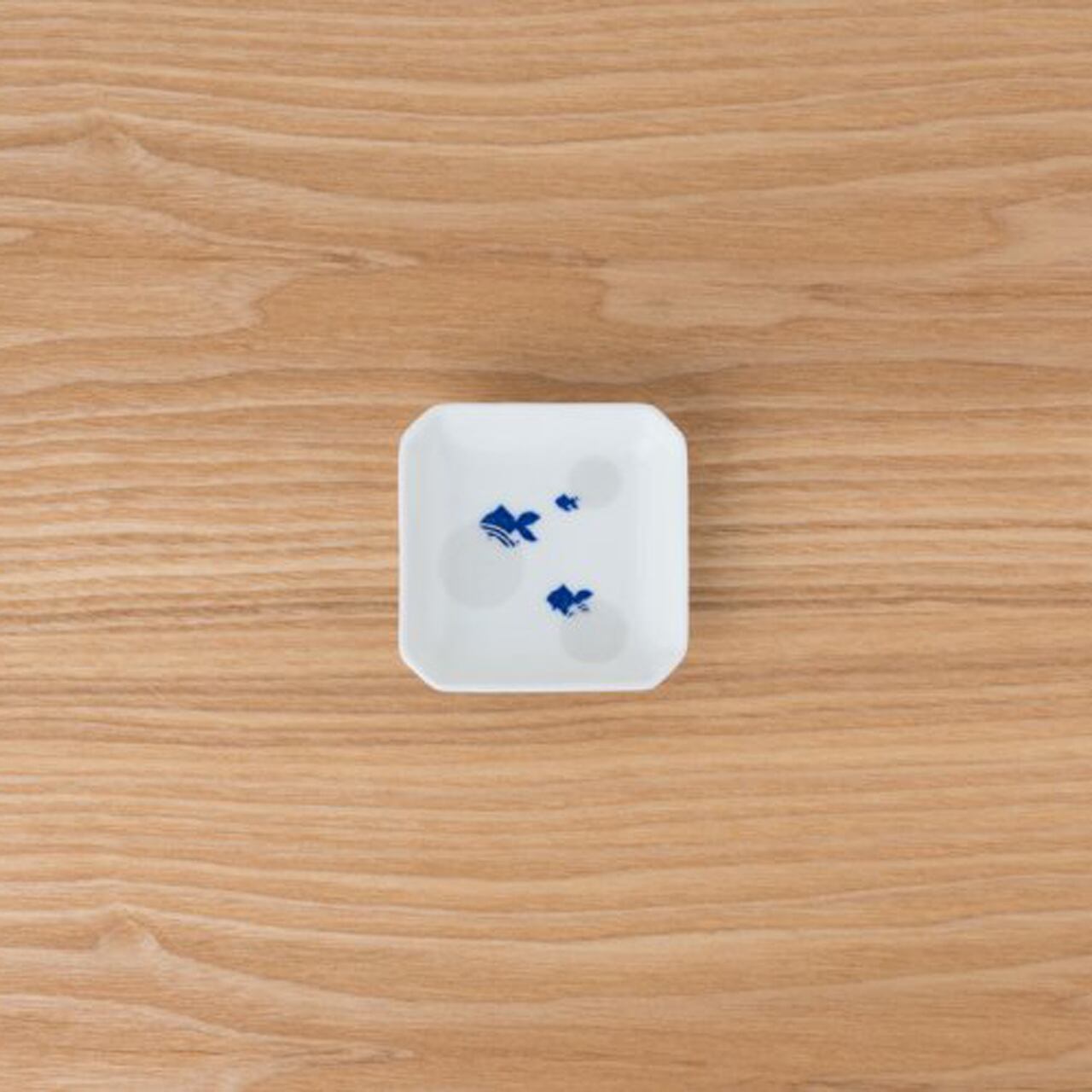 金運を表すきんぎょ。水面に広がる銀の波紋の中を泳ぐきんぎょが愛らしい角型のマメザラです。