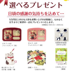 ※選べるプレゼントはコチラからご確認後、ご購入画面でプルダウンメニューよりお選びください。