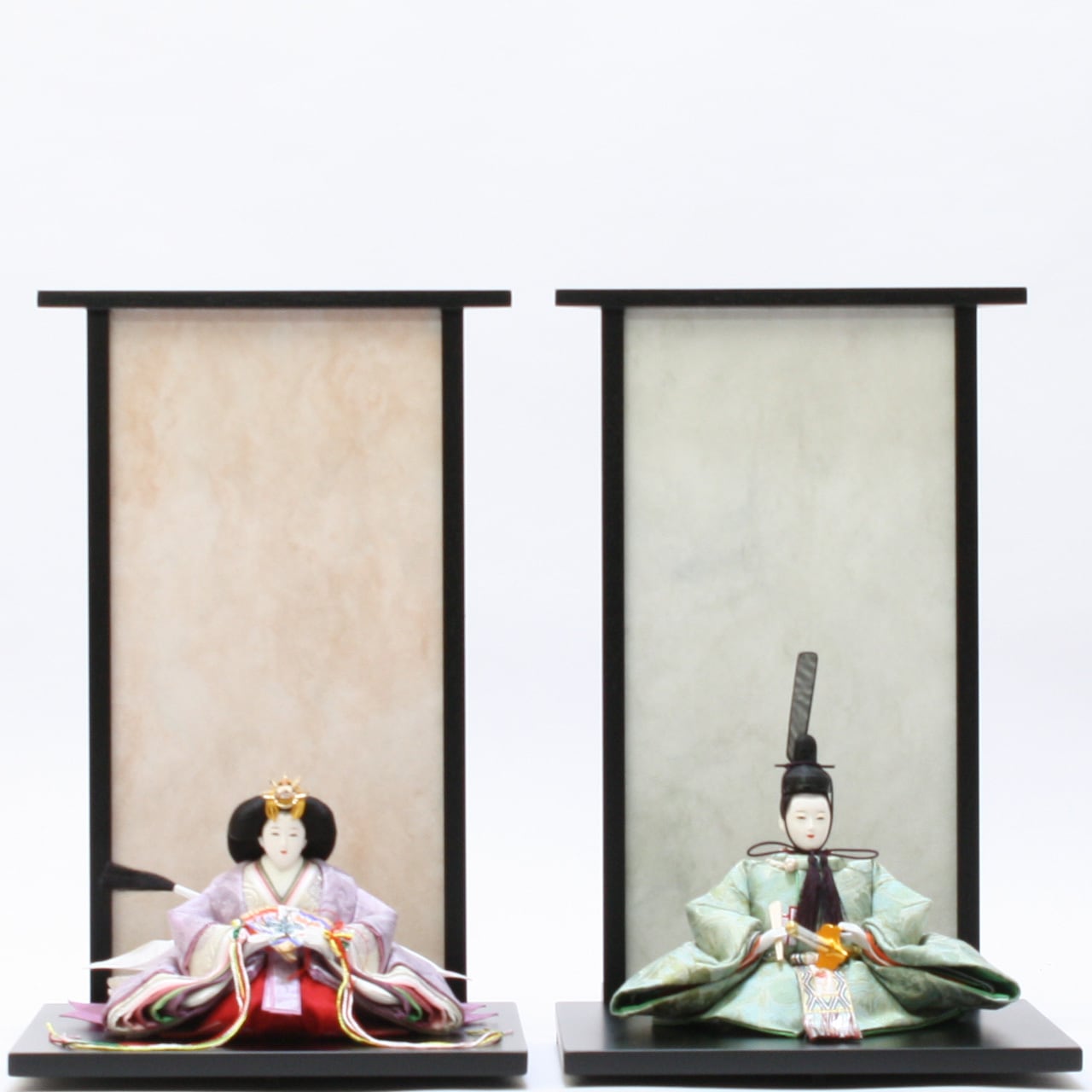 雛人形|ひな人形|初節句|コンパクト|おしゃれ|モダン|インテリア|プレミアム|こだわり|おすすめ|作家|伝統工芸士|京人形|京雛|京都|お内裏様左右《商品名》衣装着親王飾り 京都 三宅玄祥 二世作 内裏雛 松屋限定品【商品コード】32211-0111 京11番親王 二世玄祥博多織 フローラル 緑紫 33316-0104台屏風道具セット縦格子ダブル ローズグレー